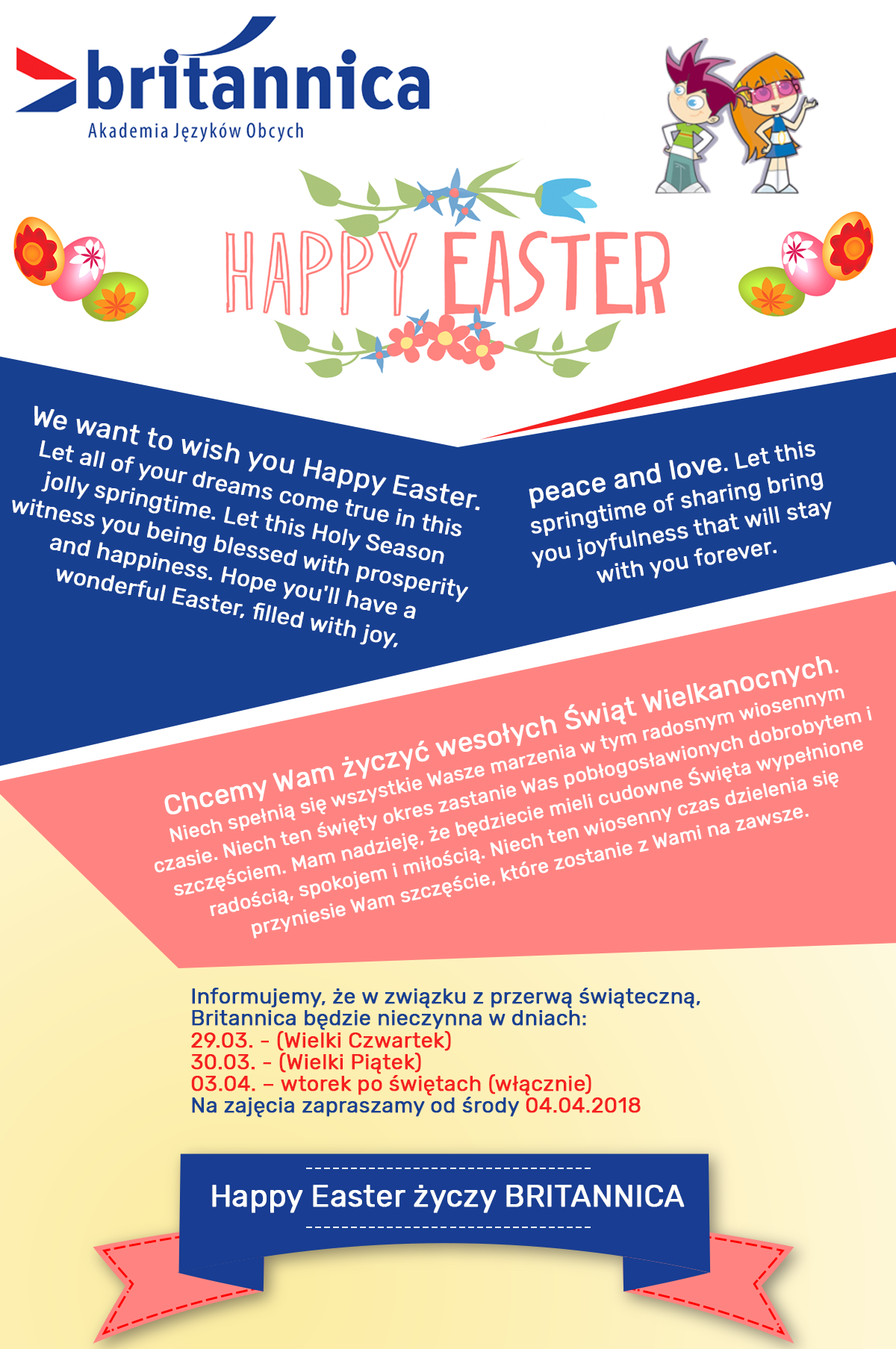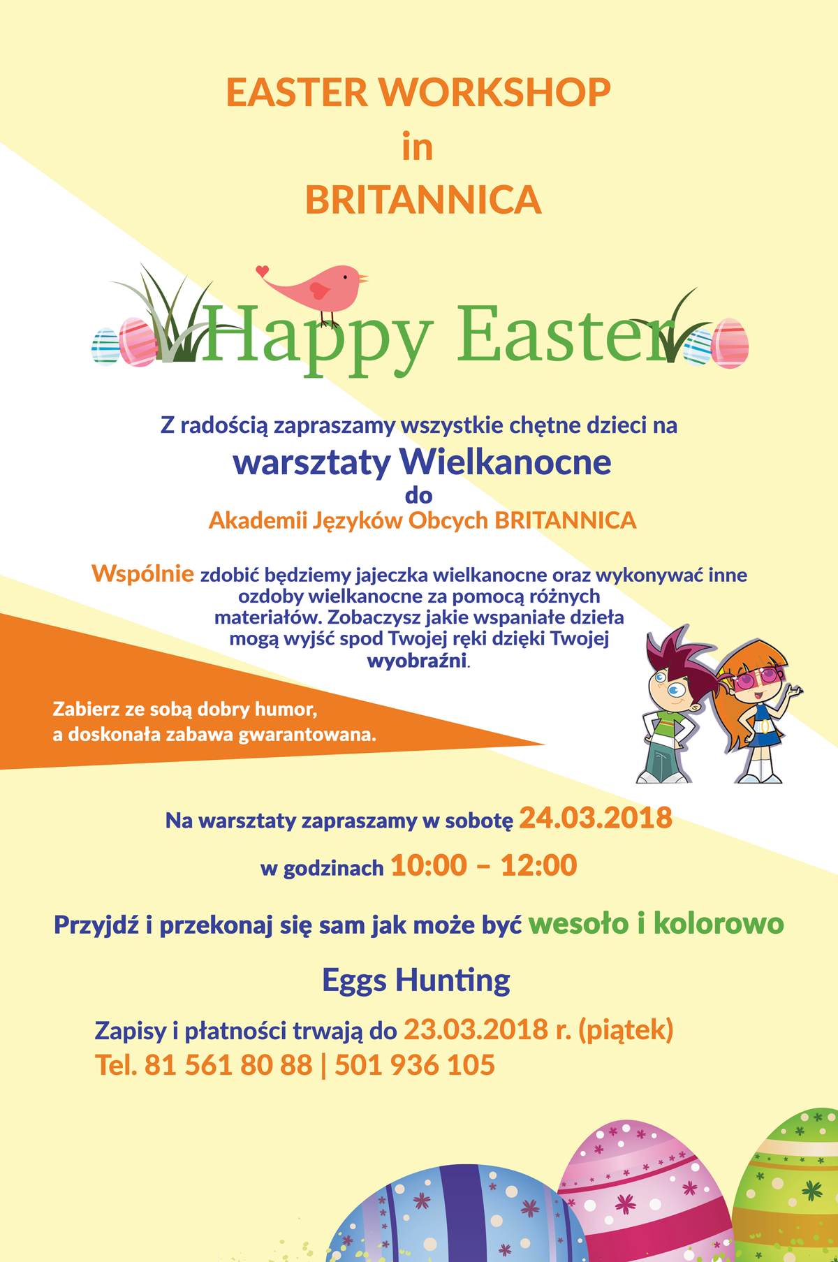 Read MoreZ radością zapraszamy wszystkie chętne dziecina warsztaty wielkanocne do Akademii Języków Obcych BRITANNICA Wspólnie zdobić będziemy jajeczka wielkanocne oraz wykonywać inne ozdoby wielkanocne za pomocą różnych materiałów. Zobaczysz jakie wspaniałe dzieła mogą wyjść spod Twojej ręki dzięki Twojej wyobraźni. Zabierz ze sobą dobry humor, a doskonała zabawa gwarantowana Na warsztaty...